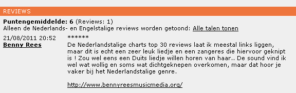 Inmiddels gehaald met: Power Party Polka : Nr. 12 in de NL top 30 van Radio NL en Tv Oranje Tip van de week Omroep IJsselmond Hittip bij Radio Rozo Rozoexpress Hittip bij Helse Patrouille.nl Tip van de week bij Hollandse Hitscafe Paradeplaat Radio Helemaal Hollands Botterschijf bij Locale Omroep Elburg Alarmschijf bij Omroep Odrie In de lijst bij www.denederlandstaligetop20.nl Klapper van de week bij Radio Chat-mee Nr. 2 in de verzoekparade bij Tv Oranje Nr. 1 in de dagtop 5 bij Radio NL Knuffelplaat bij Rob fm Piratentip Jan Gerrits Rtv Oost Plugplaat bij Streekradio.com Luisteraarstip bij Mexico fm Uitblinker van de week bij Piratenhits.com Tipper van de week bij Radio 350 Megagigant bij Gigant fm Artiest van de week bij Radio Agnetha Hittip bij Allyourmusic.nl In de top 10 van meest gedraaide partyhits Nr. 4 in de top 30 van de meest verkochte singles Discoshop Ad Nouws Topper van de week bij Nradio2 Alarmschijf bij Vica Radio Hollandse nieuwe bij Radio Swingtime Cd van de maand bij Tynaarlo Lokaal Spiegelplaat bij Radio Zonnestraal Alarmschijf Radio Volle Maan Explosieschijf bij Regiohits Knuffelplaat Rtv Nunspeet Wiekenklapper bij de Muziekmolen Nr. 1 in de Gelderse Roos top 30 Loco fm Nr. 5 in de feesttop 20 Nr. 1 in de 25 klompentoppers Rtv Hollands midden Nr. 5 in de Gigantische 23 van Gigant fm Tip notering bij Radio Continu Tip notering bij Holland fm Nr. 6 bij Radio Yosra Nr. 7 bij Radio Moonlight Nr. 15 Radio Valencia Belgie Nr. 4 bij Radio Swingtime Nr. 8 bij Hollandsehitsforum.nl Tv Muziekmenu Cor BloksZangeres van de week bij www.radiomobiel.net Oog Tv Groningen uurtje Waterloo Radio en Tv opnames bij Tros Sterren.nl Nr. 3 in de Tip bij Studiomike.be (Radio Melinda) Belgie |